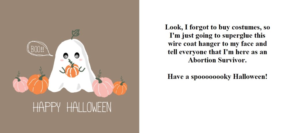 Sometimes I wish I’d gotten into the Greetings Cards business. Not necessarily Hallmark, but my own small business making cards with a little be less of a… positive message. A buddy of mine and I almost pulled the trigger on it, but I felt like I was doing all the creative work, so I backed out and kept all my ideas for myself. Here are a few:
